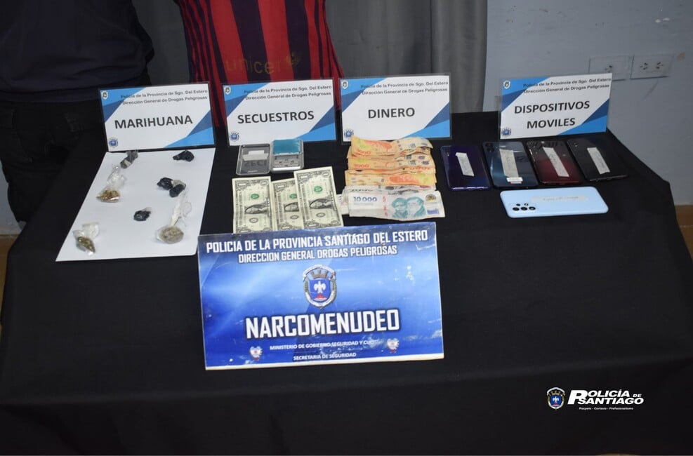 El procedimiento, autorizado por el Juez de Control y Garantías del Departamento Río Hondo, permitió el secuestro de siete envoltorios de marihuana, 212 semillas de cannabis, una balanza digital de precisión, cinco teléfonos celulares, dinero en efectivo por un total de $42.200 y tres dólares estadounidenses. Además, se concretó la detención de un hombre de 33 años, acusado de fraccionar y comercializar drogas en la zona.