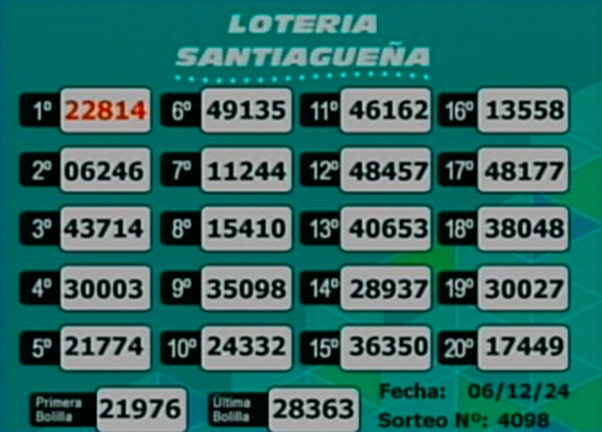 En la emisión N° 4.098 de la Lotería Santiagueña cuatro apostadores tucumanos que adquirieron las cinco fracciones del cartón Nº 22.814, se hicieron acreedores del premio mayor de $50 millones.