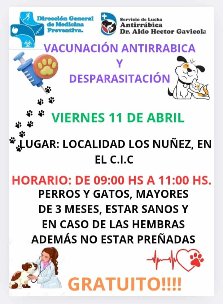 La Dirección General de Medicina Preventiva y el Servicio de Lucha Antirrábica, llevaran a cabo una campaña de vacunación el CIC de Los Núñez.