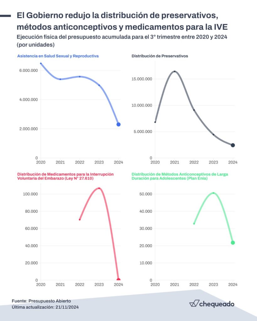 Entre el tercer trimestre de 2023 y de 2024, hubo una caída del 64% en la distribución de preservativos, anticonceptivos y medicamentos para la Interrupción Voluntaria del Embarazo en el marco del programa Desarrollo de la Salud Sexual y la Procreación Responsable.
