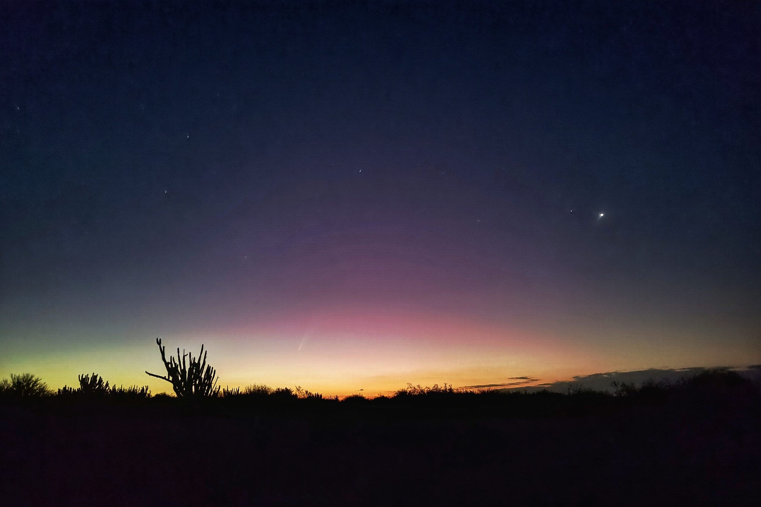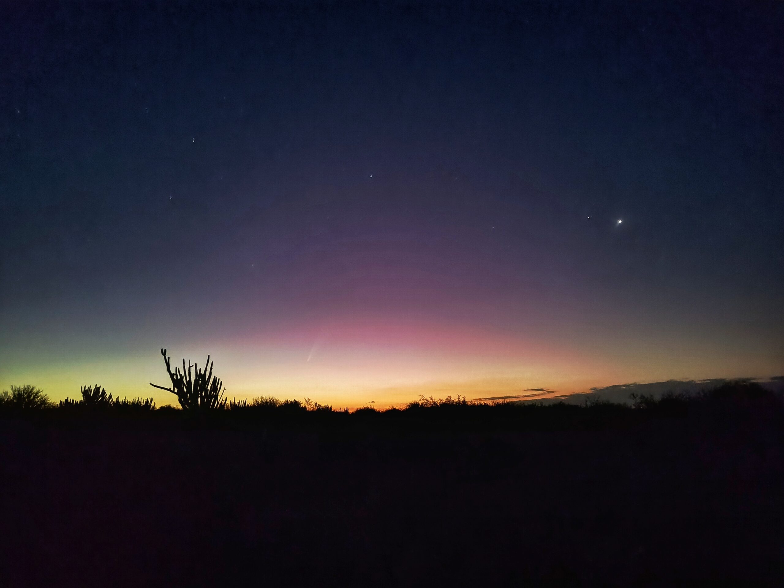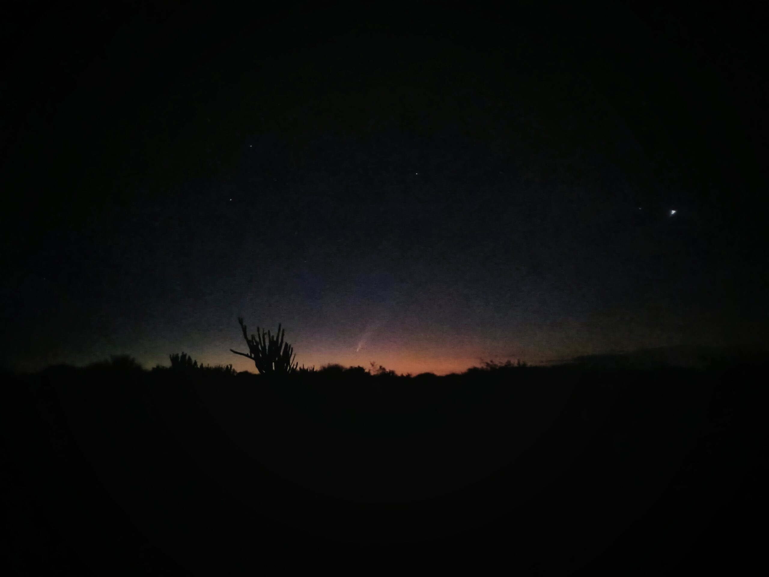 Después de varios días con nubes en el horizonte, hoy por fin se pudo ver el impactante cometa del siglo, con su majestuosa cola. Este fenómeno celestial fue visible en el oeste, justo después de la puesta del sol.