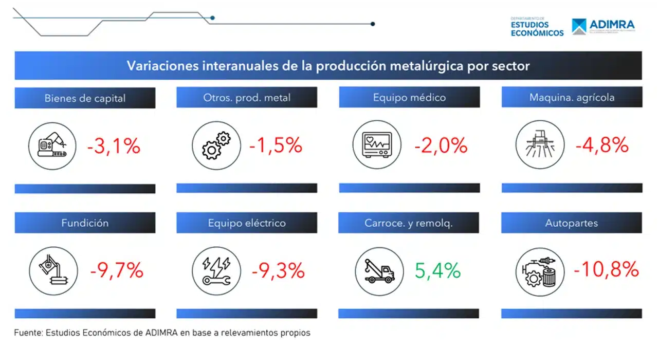 Los datos provienen del informe elaborado por el Departamento de Estudios Económicos de la Asociación de Industriales Metalúrgicos de la República Argentina (ADIMRA).