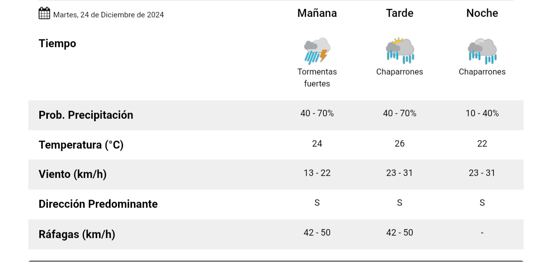 Según el servicio meteorológico las condiciones de inestabilidad se mantendrán durante toda la jornada con mejoramientos temporarios durante la tarde y la noche, con chaparrones aislados a la hora del brindis.