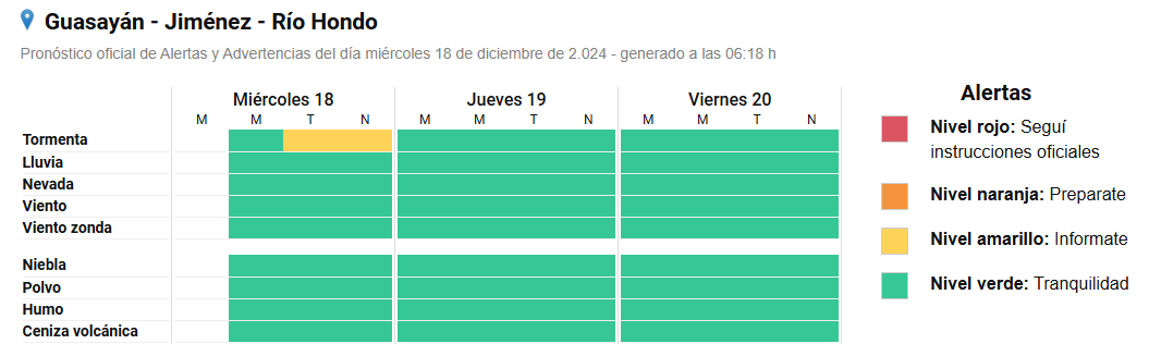 Se espera que el cambio de tiempo llegue por la tarde y se extienda hacia la tarde. El área que comprende el aviso es para los departamentos Río Hondo, Guasayán y Jiménez.