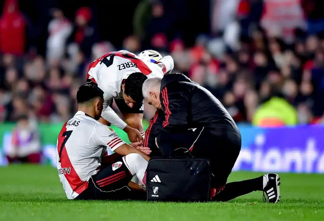 El futbolista que llegó desde Racing golpeó la butaca del banco de suplentes y terminó con hielo en la zona. El informe preliminar arrojaría un esguince en la rodilla izquierda y el tiempo de recuperación es una incógnita, teniendo en cuenta que River disputará los octavos de final de la Copa Libertadores el 14 y 21 de agosto ante Libertad de Paraguay.