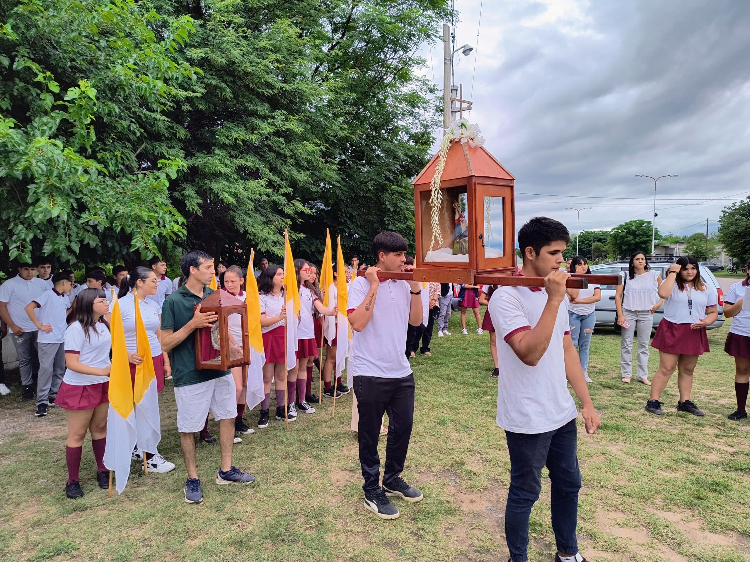 La misa que en un principio iba a realizarse dentro del templo, fue cambiado a la parte externa ya que el tiempo acompañaba. La misma fue presidida por el presbítero José César Atahuichi Ochoa, de la Parroquia Nuestra Sra. del Perpetuo Socorro de Las Termas de Río Hondo.