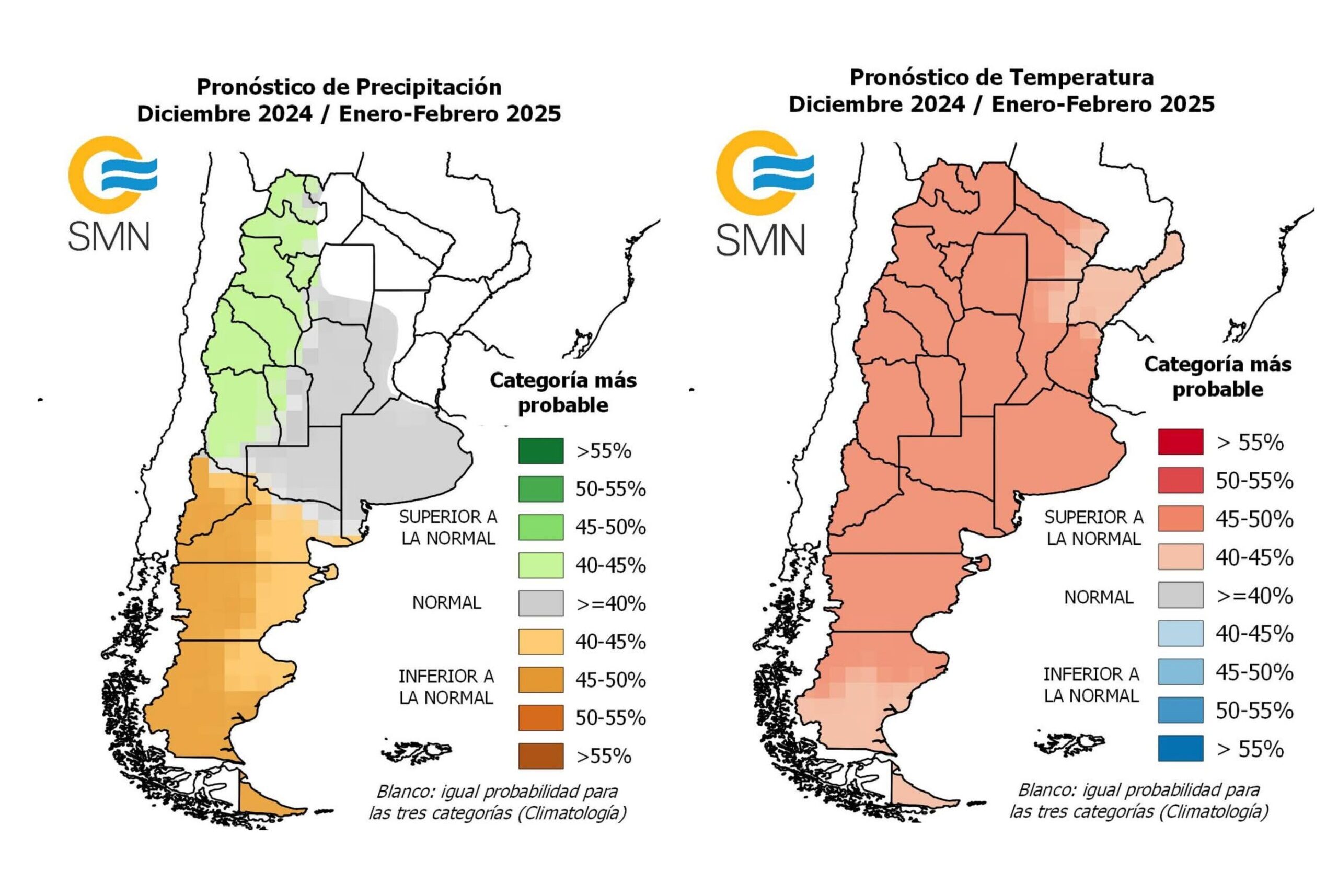 El Servicio Meteorológico Nacional (SMN) publicó ayer el pronóstico climático trimestral para los meses de diciembre, enero y febrero.