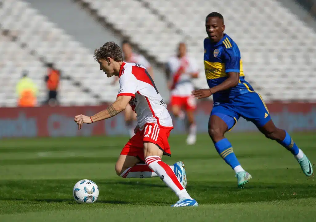 Con goles de Mastantuono (mágico de tiro libre) y Driussi, el Millonario se impuso ante el eterno rival. Merentiel anotó…