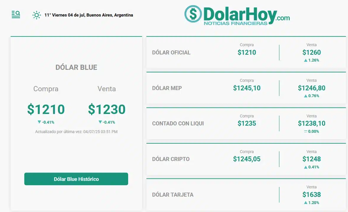 En tanto, el dólar blue se mantuvo en $1.230, cada vez más debajo del minorista.