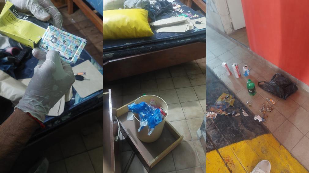 Además, se secuestraron una pipa de fabricación casera, una cuchara, botellas de bebidas alcohólicas, restos de blíster de Viagra, dinero en efectivo y un automóvil.